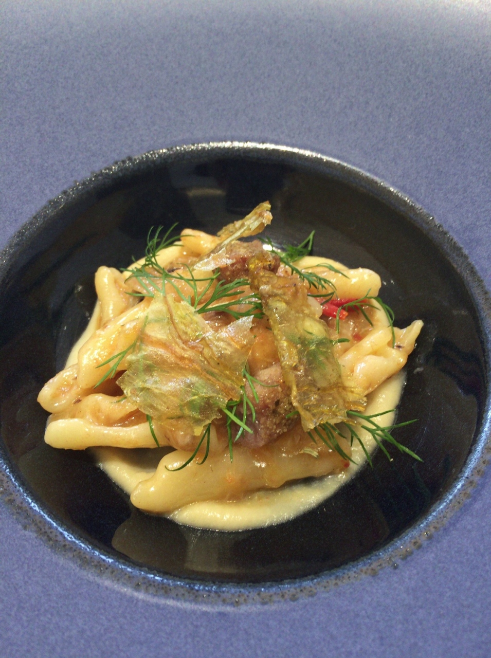 チカティエッリというのは、そういうパスタの種類だったんですが、手でくりっと丸めた不揃いな形なので、分厚いたころ、薄いところと色々あり、口の中で噛むたびにいろんな食感が楽しめました。