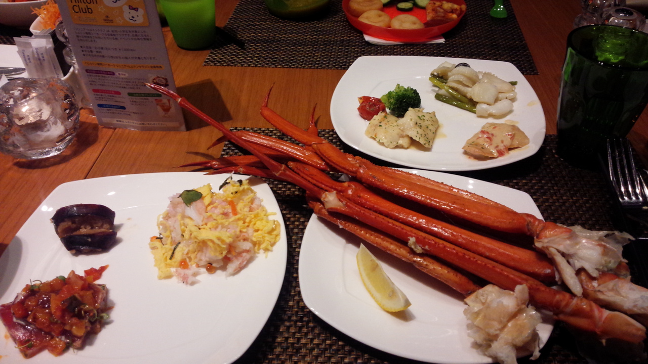 毎年人気のカニ食べ放題ディナーブッフェです。ゆでズワイガニをはじめ、カニを使用した料理が並びます。常に補充がされるので、カニを十二分に堪能できます。もちろんカニ以外の料理も美味しいものが多く、目でも舌でも楽しむことができます。惜しむらくは、肉料理が若干物足りない感じがします。しかしながら、一流ホテルの味と接客で楽しい一時を過ごすことができます。特にカニディナー期間の週末は混み合うとのことですので、予約はお早めに。