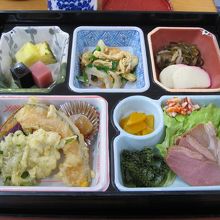 食事は松花堂弁当タイプで、沖縄の郷土料理がたくさん入っていました。