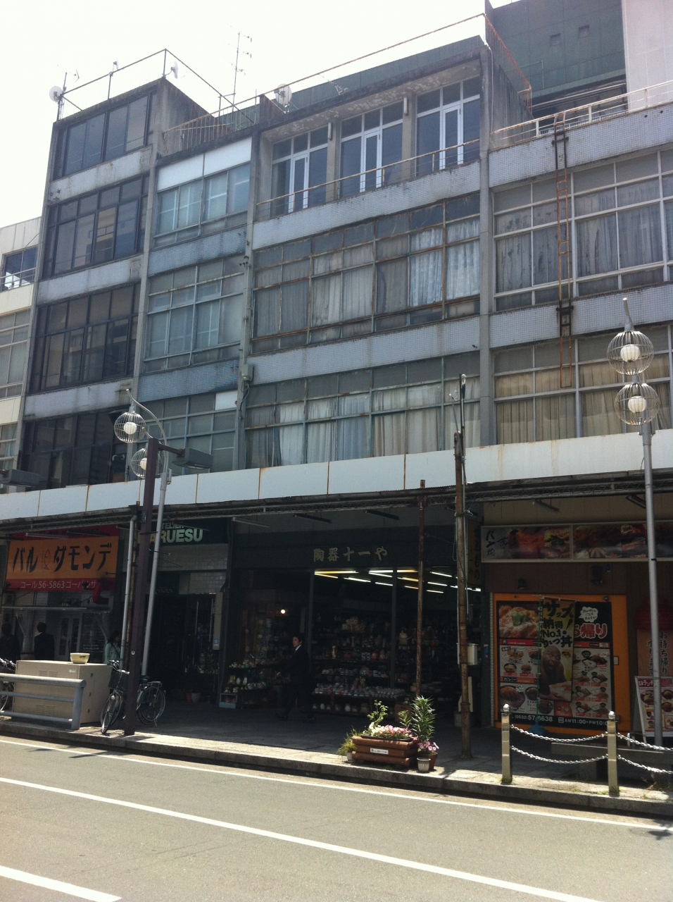 豊橋駅を出て、東側に下りると駅前大通と広小路通りが東に延びており、駅前大通はデカめのビルが立ち並び百貨店等があるのですが、広小路は雑居ビルの1Fに商店が沢山ならび歩道にレトロな屋根がついていて雨の日でも傘なしで買い物できるようになっている。この屋根付き商店街スタイルって、新幹線ひかりしか止まらない駅で他にも2,3場所あった気がする。雑居ビルの寂れっぷりとレトロップリがたまらない通りです。