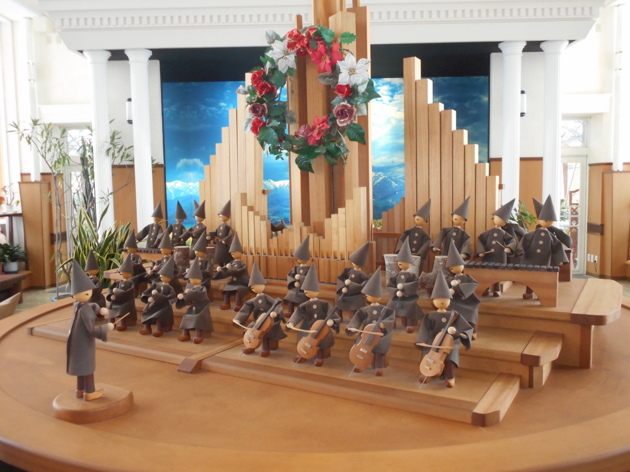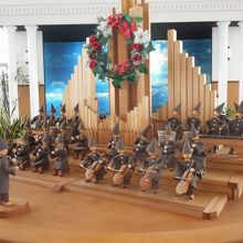 建物の内部に入ってまず目に入るのが、木製の笛が組み込まれたからくりのオルガンです。小さな木組みの人形が掘られていて、心地よい音色を奏でていて、とてもメルヘンな雰囲気を出していました。