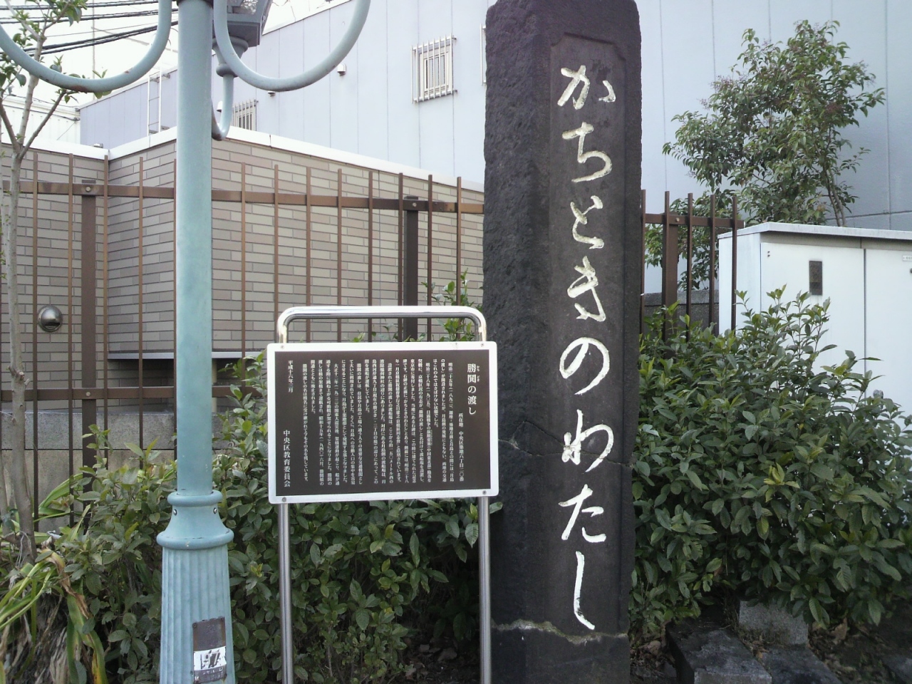 かちどきの渡しの跡の碑は、晴海通りの勝鬨橋のたもとにあります。