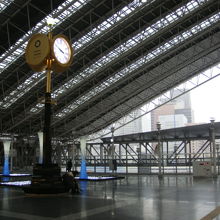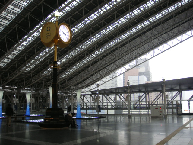 JR大阪駅ホームの上部を横断する連絡橋の屋上部分が「ときのひろば」になっています。金と銀の時計が目印になっており、待ち合わせや休憩の場所として使われています。しかし気温は外と同じで、さらに風が吹き抜けており非常に寒いです。そのためか真冬ではほとんど人はいませんでした。
