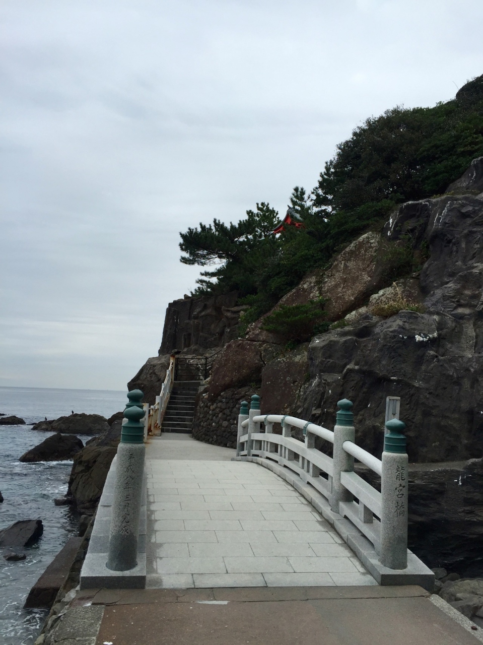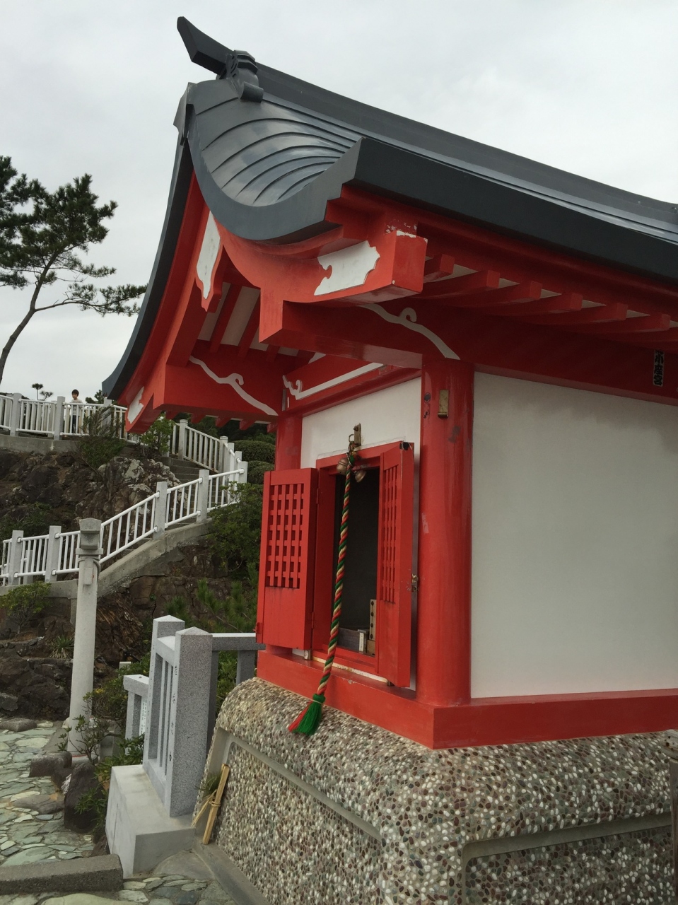 桂浜の端の方にあります。龍宮橋を渡り、階段を上ると朱色の小さな祠が。