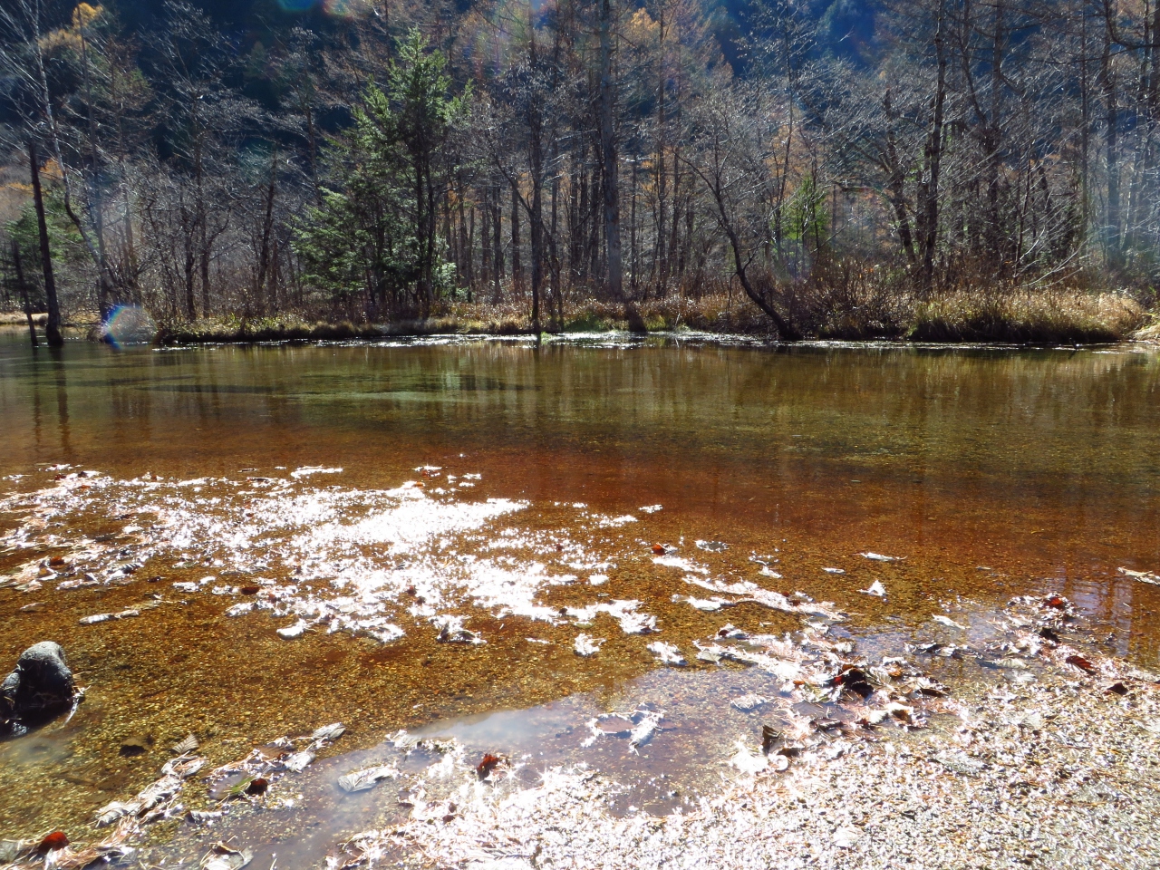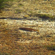 池底には、枯れた水草などが少しずつ積もり、また大雨によって大量の土砂が流れ込んだ結果、最深5メートルあまりあった池の大部分は湿原化したそうです。その湿原地帯をよくよく見てみると、小さな魚が泳いでおり、何とも癒されました。
