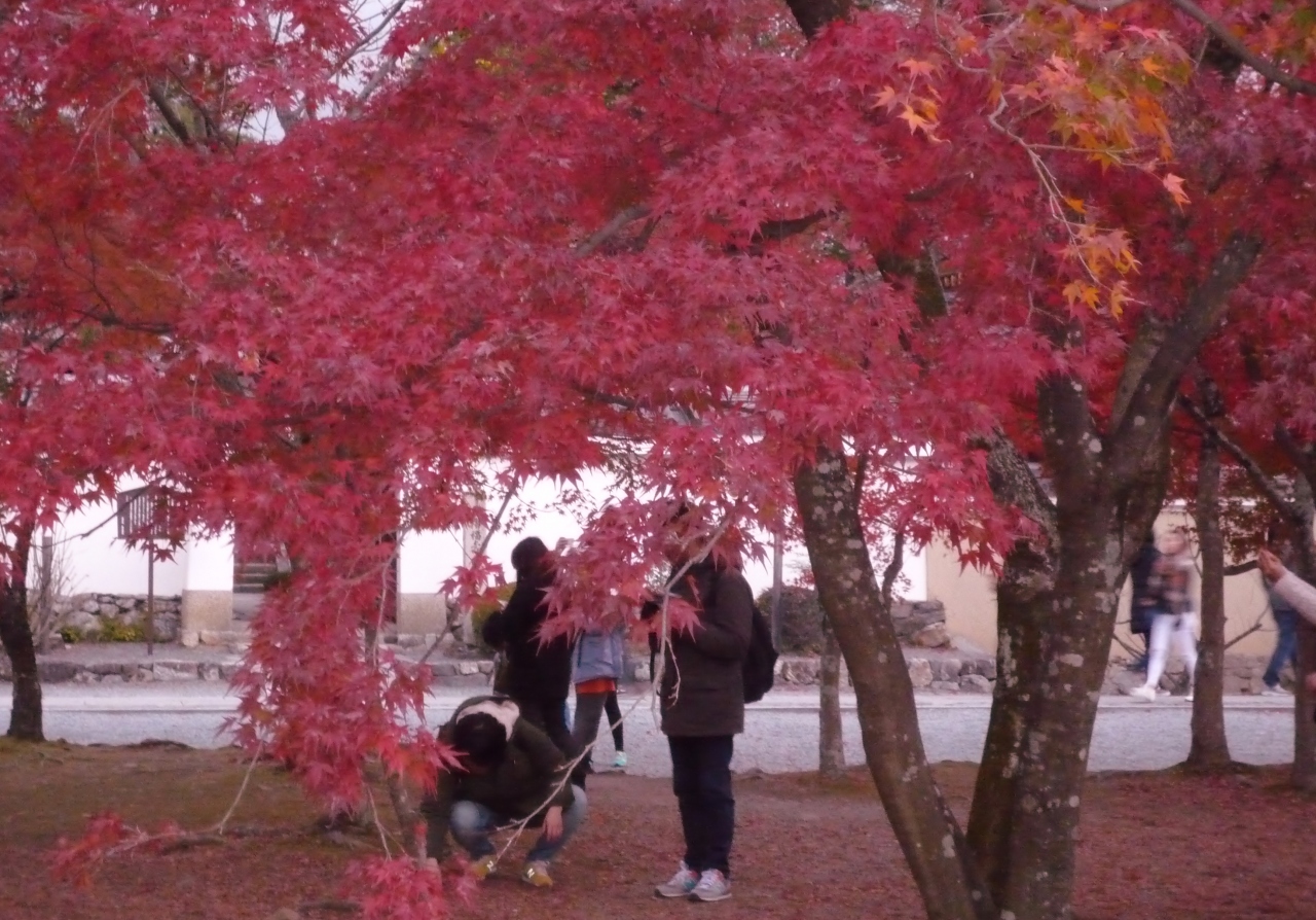 お寺の前は紅葉が美しく、この辺りで記念撮影をする人が多かったです。