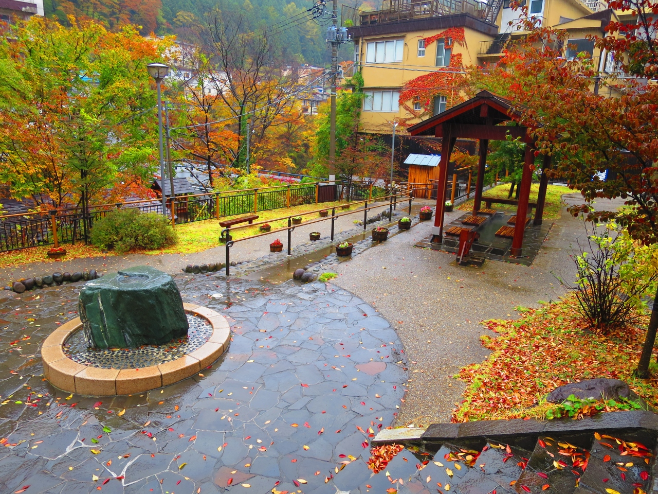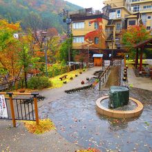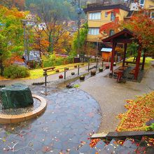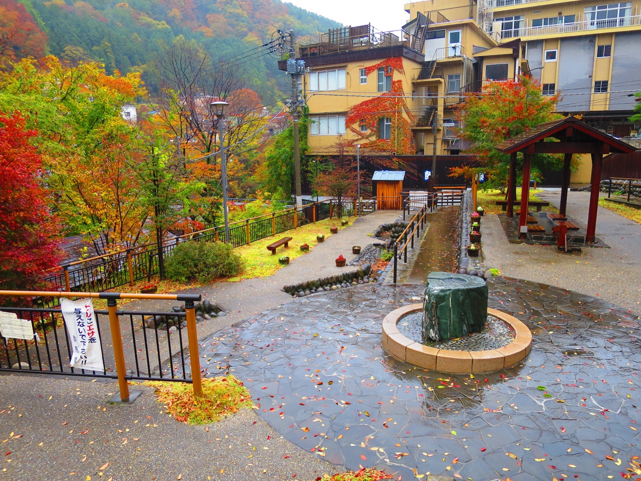 水上温泉の温泉街の水上橋のたもとに湯原温泉公園があります。小さな公園ですが、源泉かけ流しの無料で入れる足湯、手を浸す手湯があり、手足がぽっかぽかになります。雨が降っていたからか(足湯には屋根あり)他に人が居らず、ゆっくり温まれました。