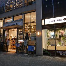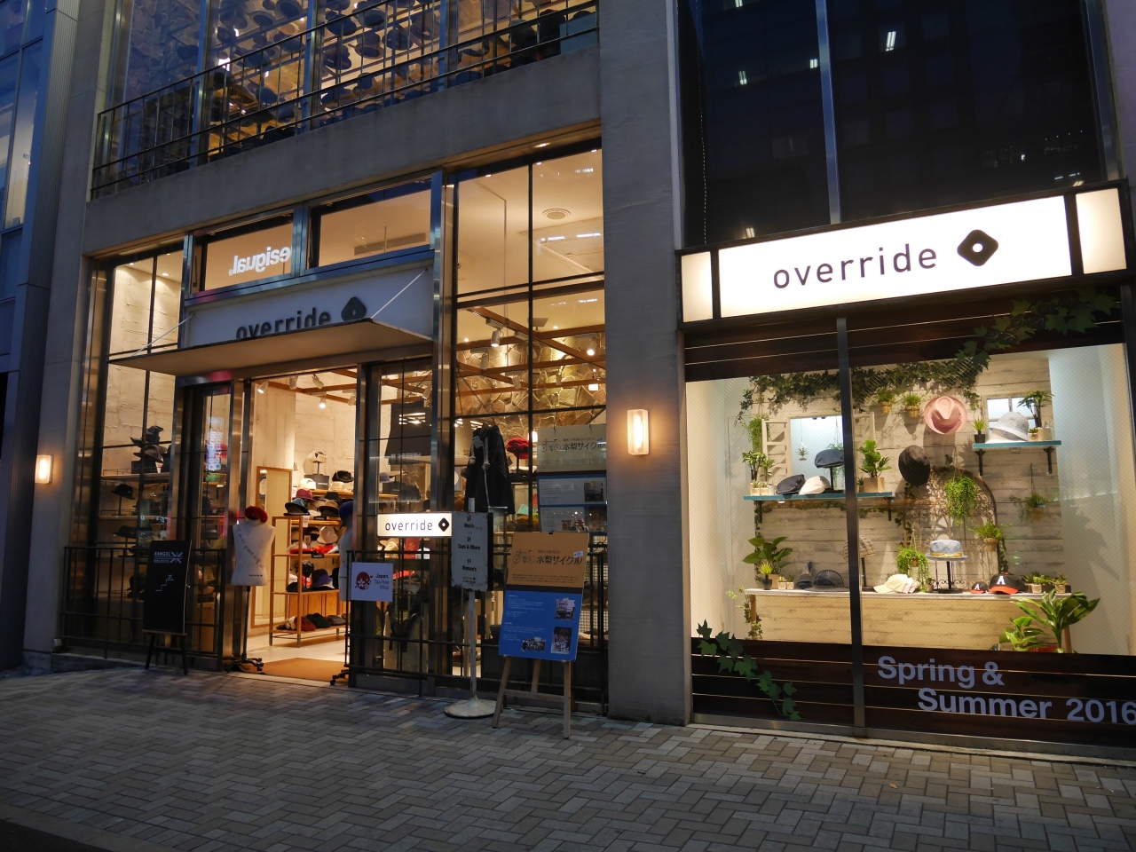 明治通り沿いにある帽子専門店「オーバーライド」は、夕方通りかかると、店内の商品の姿が一層目立つ感じです。