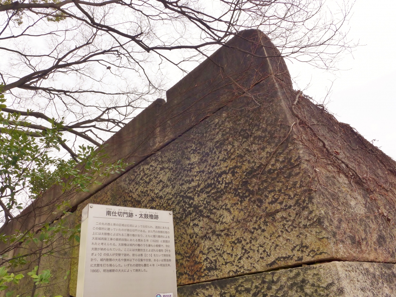 大阪城の西之丸庭園への入口前から本丸の方へ向かう途中に南仕切り門跡がありました。