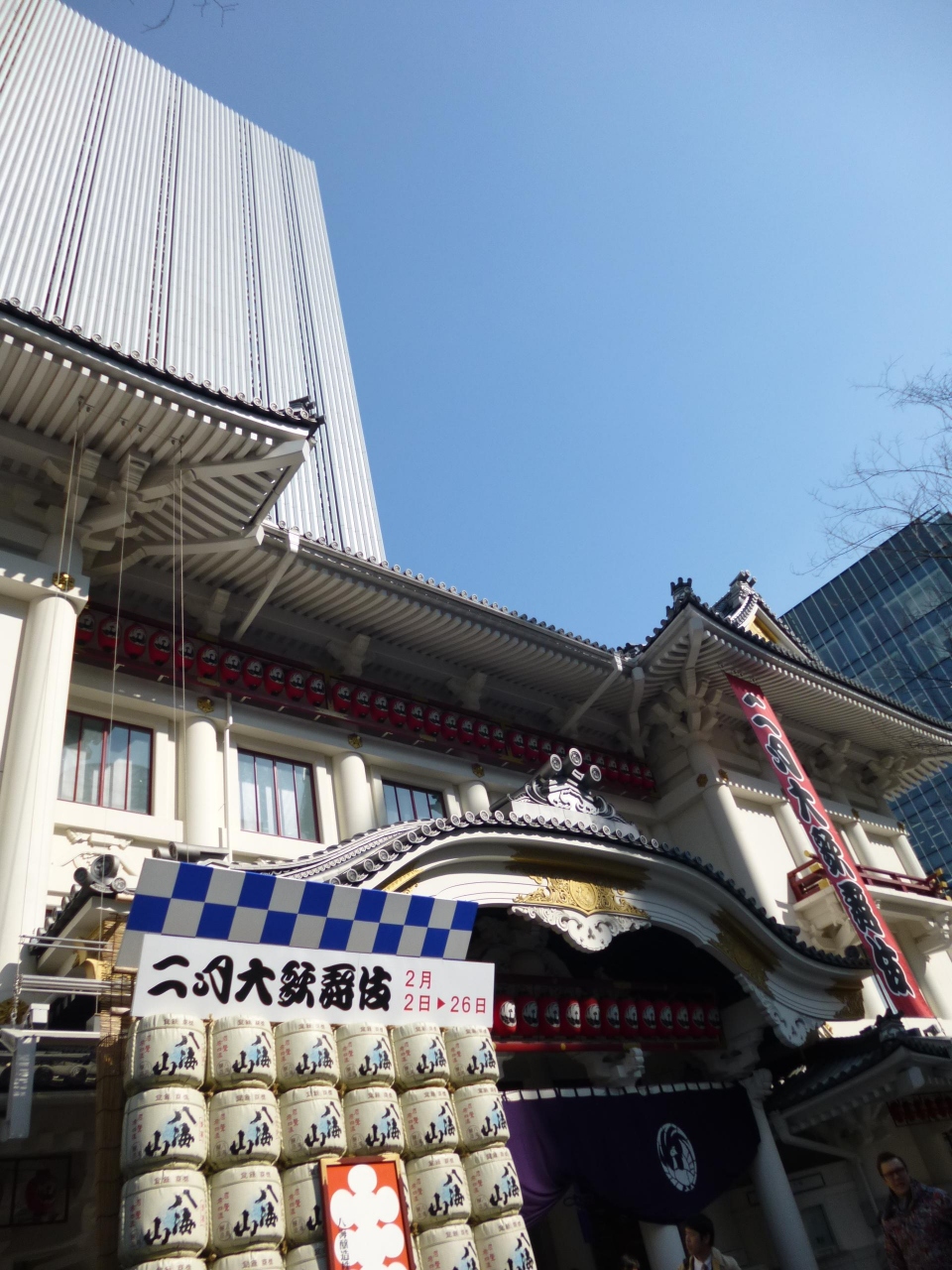 既に2月ですが、澄みわたる冬の青空を背景に、歌舞伎座と歌舞伎タワーがとても映えていました。