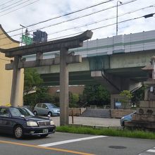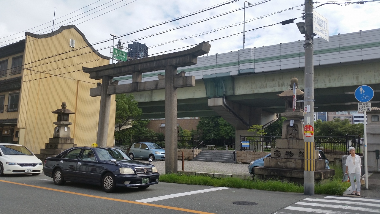 恐らく鉾流神事に関係するのでしょうが、橋の北東に、川に向かって鳥居が建てられています。天神祭が開催されていない時は、駐車場として使われていました。