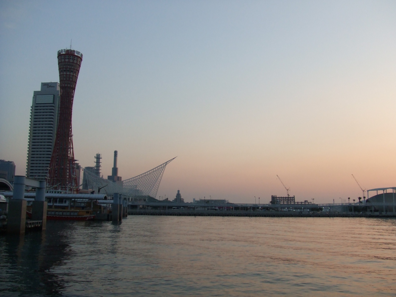 元町や三ノ宮からはちょっと遠いのでめったに行かないんですが、たまたま近くのポートタワーホテルに出張で泊まった時に、さっかくだから早朝散歩に行きました。真っ赤なポートタワーに神戸の海と朝日、とてもきれいな風景が見れました。