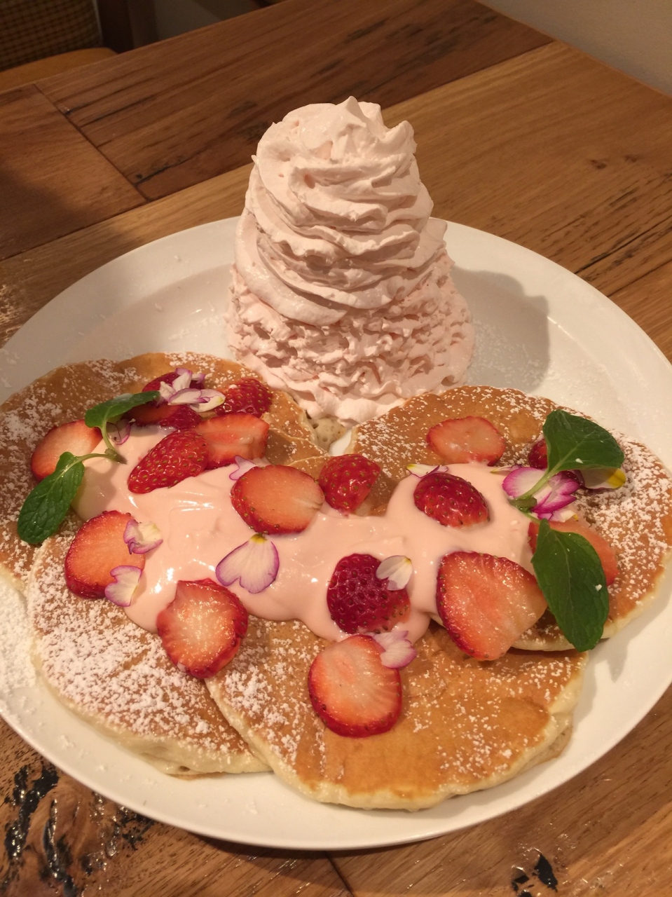 パンケーキといったらここ。これまではかなりの大行列だったのでなかなか予約をしないと入れないイメージでした。最近は、長い列がないようなので平日なら予約なしでいっても入れるかもしれませんね。おすすめは旬のパンケーキです。