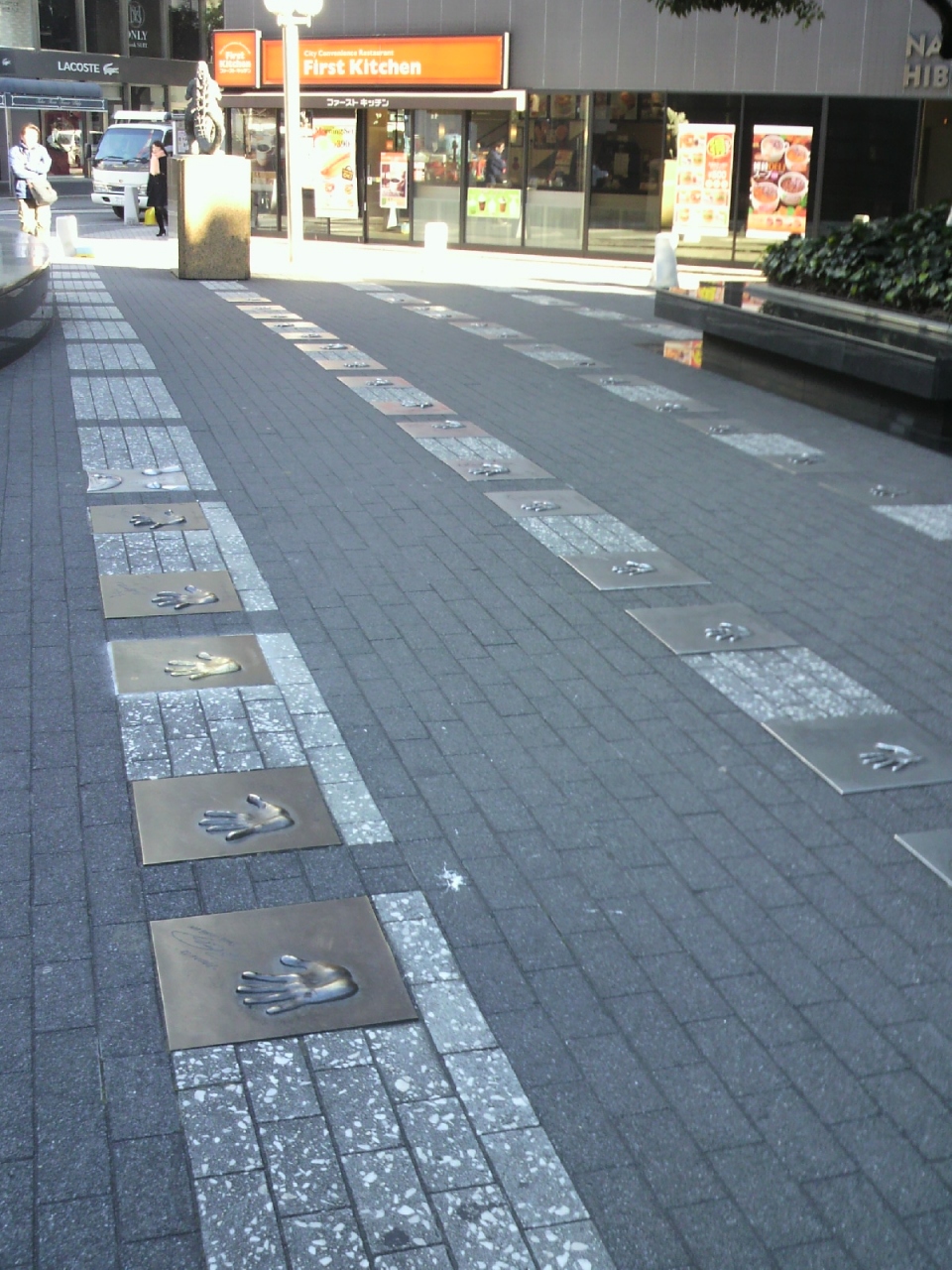 合歓の広場は、東宝系の旧日比谷映画劇場・有楽座の跡地再開発により出来た経緯もあるようで、東宝系の有名人の手型が多く残されています。