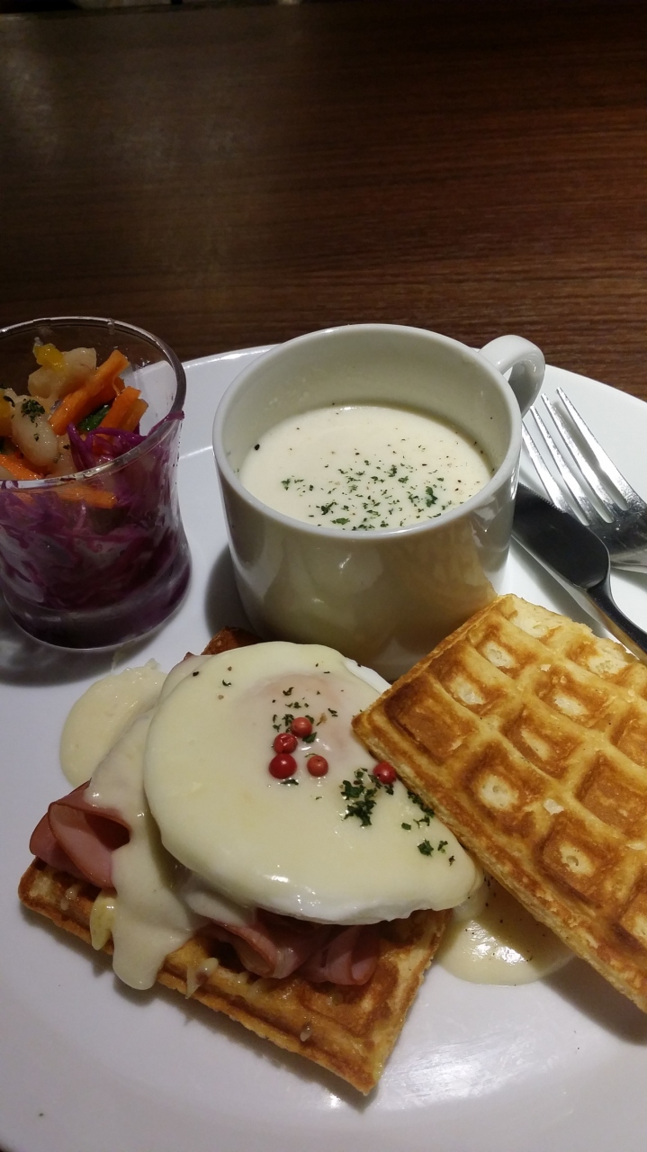 いつも並んでいます。店内は薄暗くて落ち着く感じです。昔のコーヒー屋さんという感じです。ポーチドエッグのワッフル750円と、甘い北欧ワッフル280円を注文。ポーチドエッグはお酢漬けの野菜がかなり美味しいかった。北欧ワッフルは、食後のおやつにぴったり。大きすぎず、こじんまりしてて可愛い。なにより提供スピードが早いのが嬉しい。