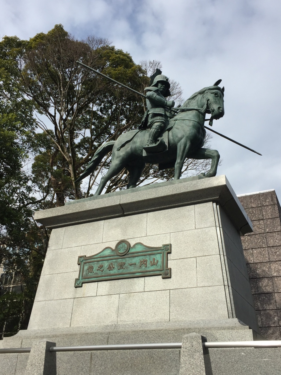 土佐藩初代藩主にして高知城を建てた山内一豊公の銅像。