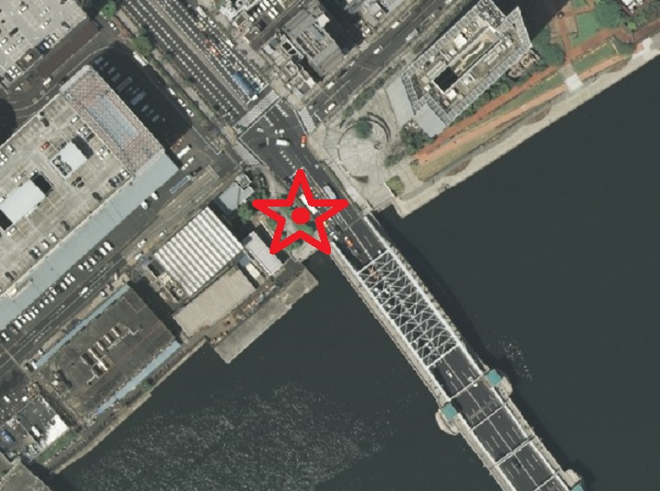 勝鬨橋記念碑は、同じく、勝鬨橋のたもとにありますが、隅田川沿いにあります。