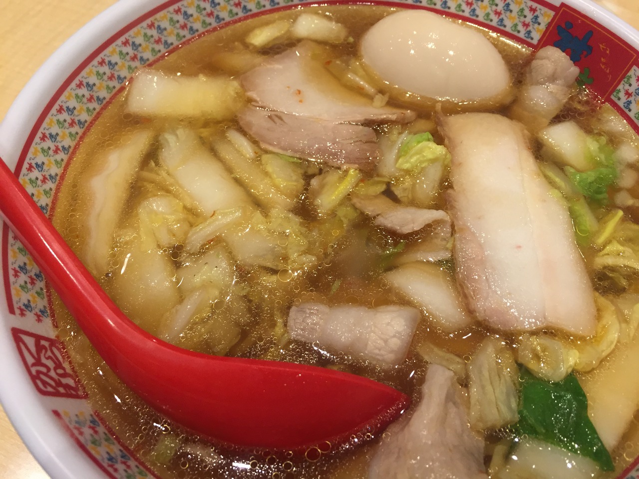 白菜の入ったスープは少し甘く優しい味。麺もツルンとして独特です。特別美味しいって訳ではないけど、たまに食べたくなる味です。