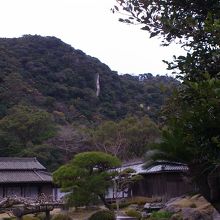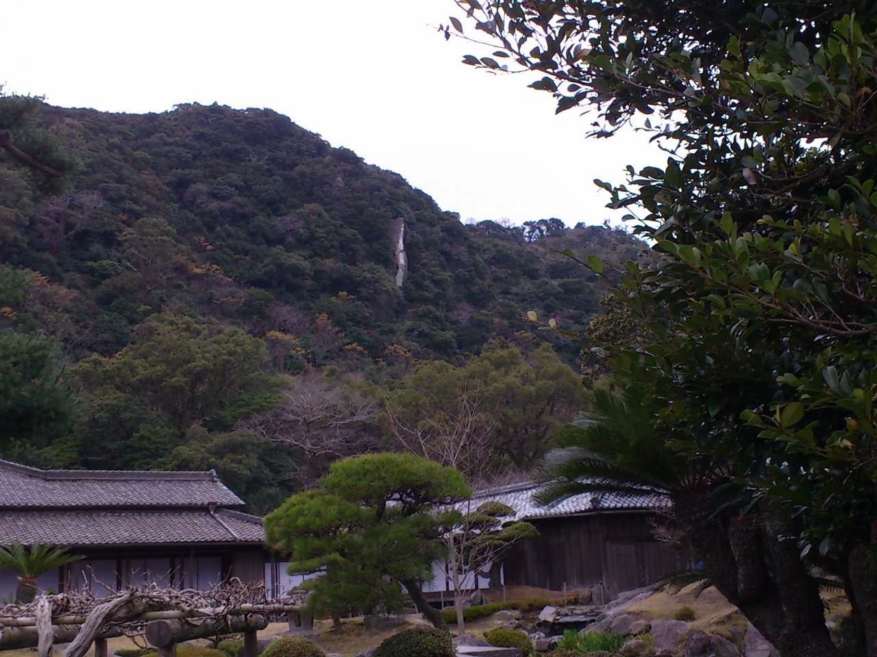 仙巌園の御殿の裏山の山腹に巨大な岩があり、そこに千尋巌という白い文字がきざまれています。27代斉興がのべ3900人の人夫をつかい、3カ月かけて作らせたものだそうです。日本的ではなくて、中国の風景のように見えます。