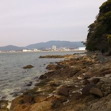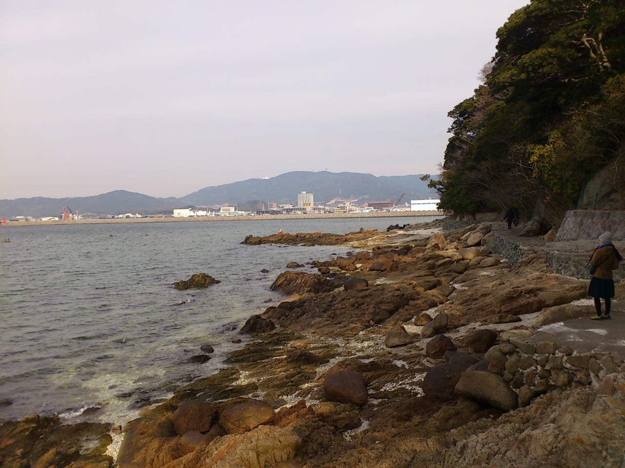 蒲郡の竹島を訪れました。竹島まで400mほど橋を渡ってたどり着き、石段を登ると八百富神社の本殿があります。その先をどんどん進むと、今度は下り坂になり森のような場所を進むと竜神岬という場所に出ます。ここから階段を下ると、岩場に出ます。ここから時計回りに、竹島を半周する遊歩道が続いています。