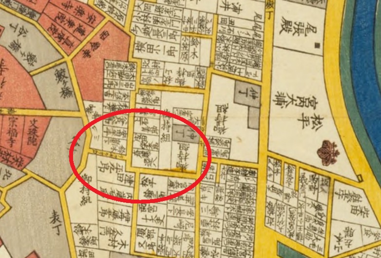 江戸時代の絵地図によると、鉄砲坂の周辺には、鉄砲衆の御持組の住居地域が多数あり、その中には射撃練習場もあったようです。
