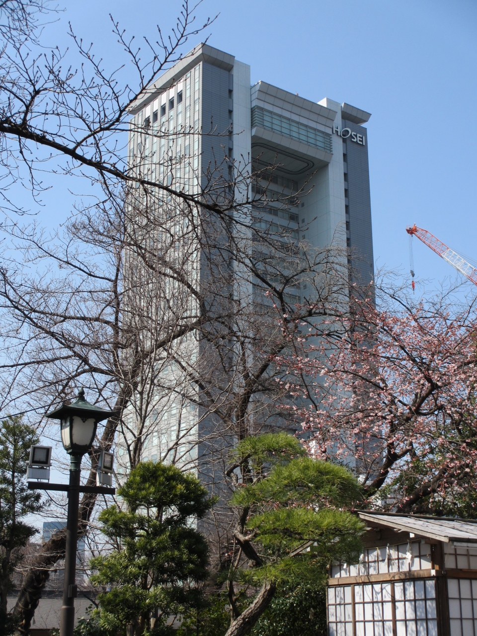 靖国神社を訪れた際、拝殿裏にある日本庭園付近から、高くそびえ立っているボアソナードタワーを見ました。しばらく大学周辺には行っていなかったので、その高さにびっくりしました。後で知ったのですが、地上27階、地下4階の建物だそうで、あれほどの施設と環境の中で学べる学生たちは何と幸せなことかと感じました。