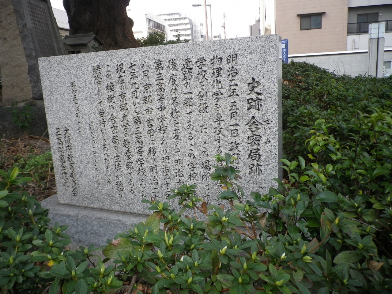舎密局(せいみきょく)は、化学技術の研究・教育、および勧業のために作られた官営・公営機関。大阪と京都に設置されました。京都ではなく大阪の舎密局が三高、後の京都大学の源流となっています。「舎密」とは、化学に対する当て字だそうです。