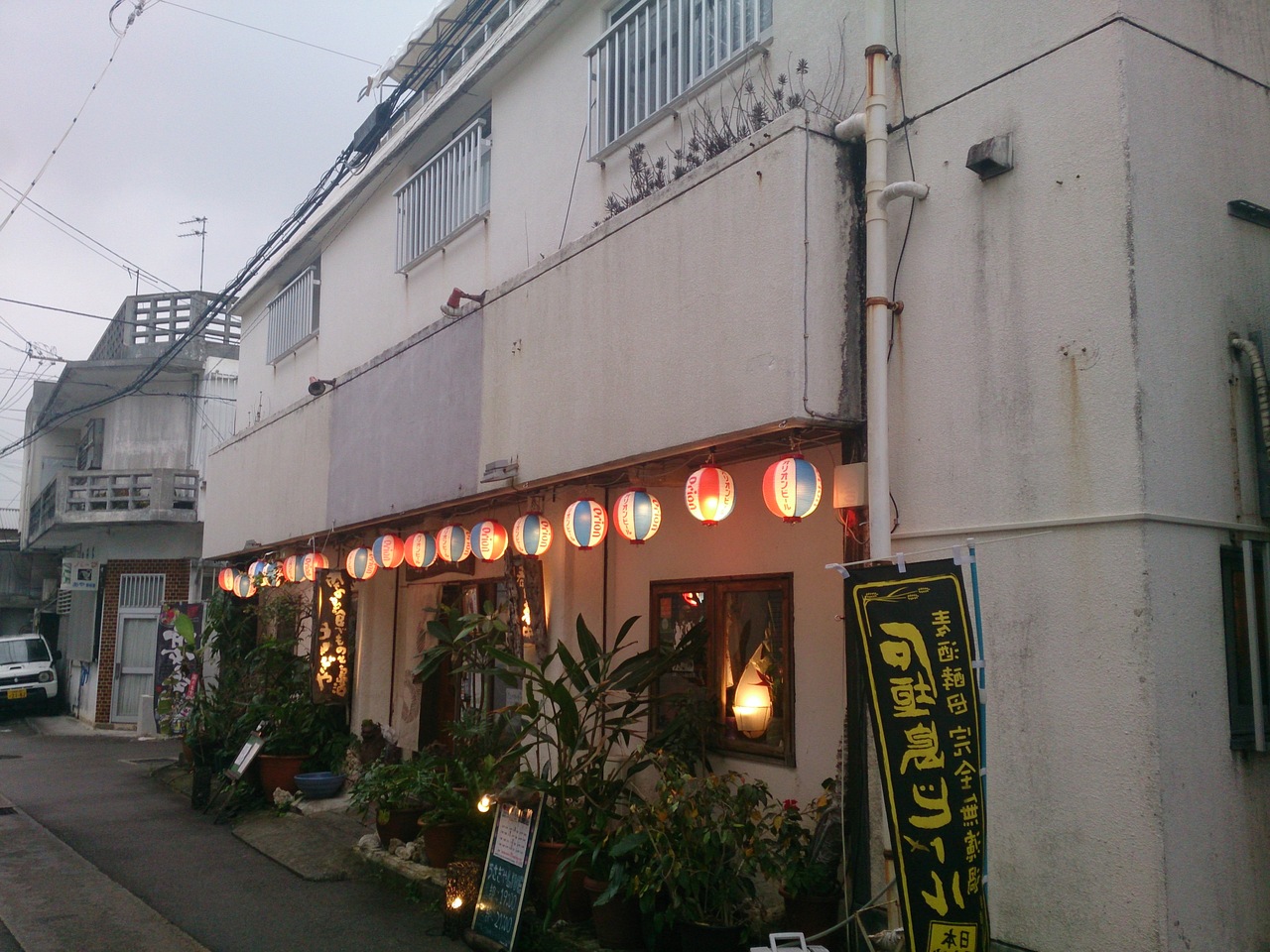 バスターミナルから歩いて5分ほどの場所にありました。一応予約して入りましたが、夜7時前にはお客さんで埋まる盛況ぶりでした。というのも、ここは島唄ライブが開催されることで有名で、第一部が夜7時から行われるからのようです。