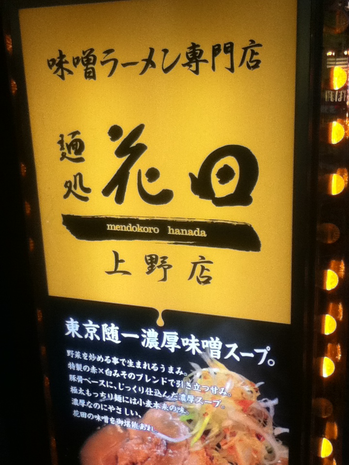 JR御徒町駅の北東、飲食店が並ぶ路地沿いにあるラーメン屋さん。飲んだ後によってみた。店頭は淡い黄色系の看板が立っている。平日夜、数名のお客さんがいた。店内はあまり広くなく、カウンター席のみである。味噌ラーメンを食べたが、スープは濃厚、麺は太め、チャーシュ、もやし等が入りまぁまぁ旨い。飲んだ後などにラーメンを食べるにはいいかもしれない。