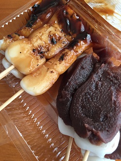 北千住の路地裏マップでは駅から遠い場所に位置していましたが、思ったほどは遠くなく、近くに横山家住宅などもあり、商店などをみているとすぐに着きました。やきだんごは炭火の焼きが香ばしく醤油味がすっきりしていて美味しいし、漉し餡のあんだんごは餡がきめ細かく甘さ控えめ、豆餅は赤エンドウ豆がたっぷりと入っていて、どれも美味しい!お値段はだんごが1本90円、豆餅が130円。税込でした。