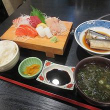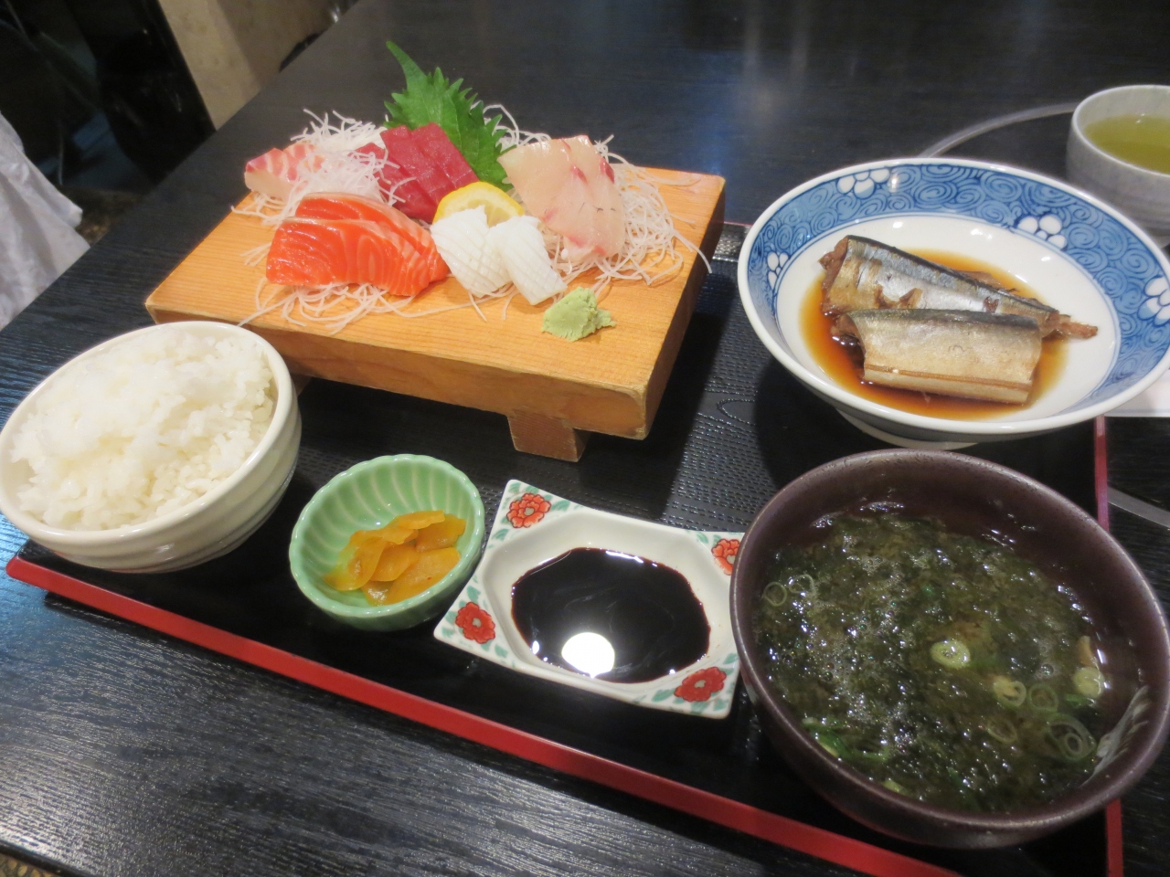 お土産物屋さんや飲食店が入ったちょっとしたショッピングモールのよう。いくつもお店が入っていますが、正直言ってどこも似たようなものを売っています。僕はランチを食べるために、中にある飲食店、二見ヶ浦食堂に行きました。お刺身に煮魚、大盛のごはんにお味噌汁とボリューム満点でリーズナブルなお昼に満足しました。