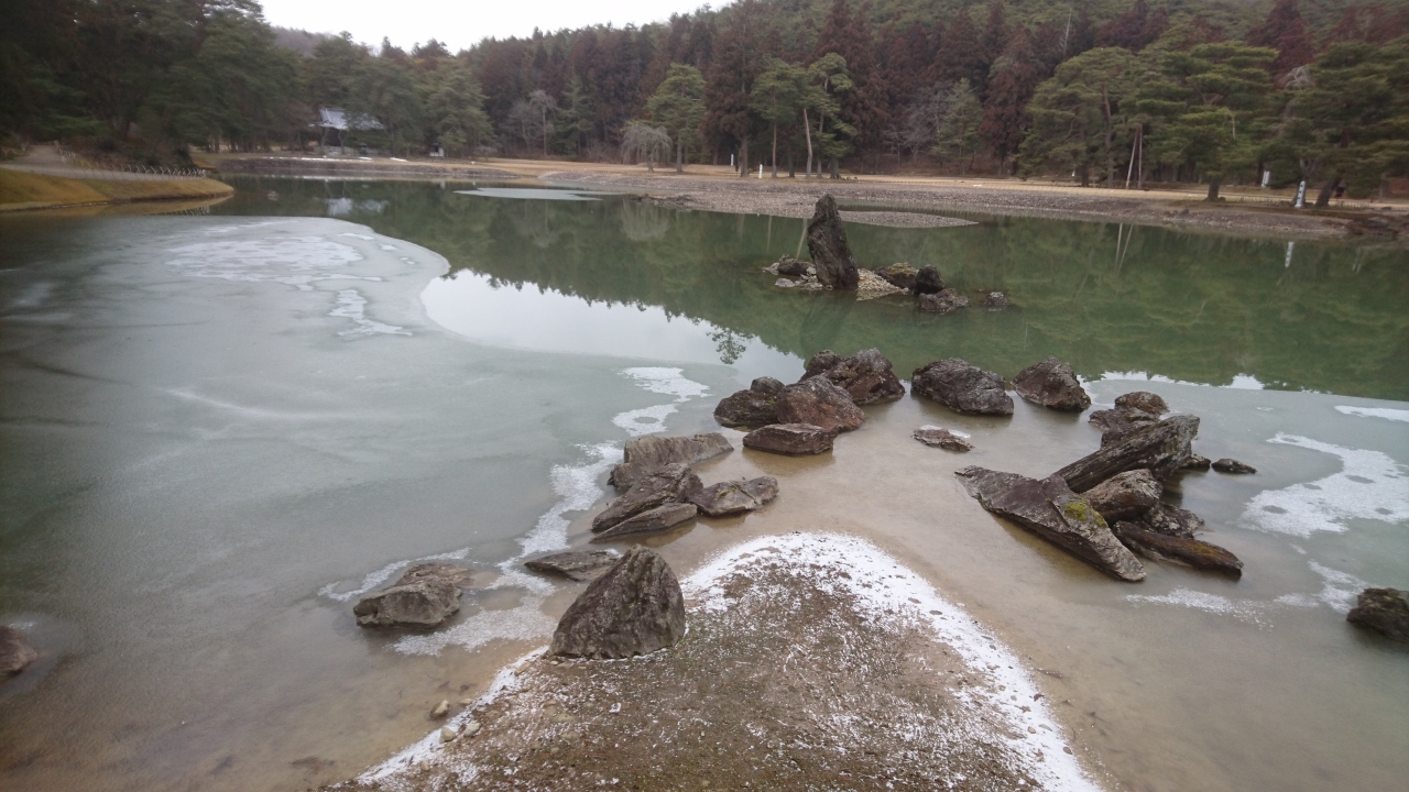 そして何よりも印象に残ったのが、庭園の中心にある大泉が池です。季節によって美しさが変化するからです。それを裏付けるものとして写真にも写っていますが、僕が言ったのは2月だったので気温が低くまだ寒かったです。なので、池の一部が凍っています。季節に美しさが変化するのはこういう理由です。