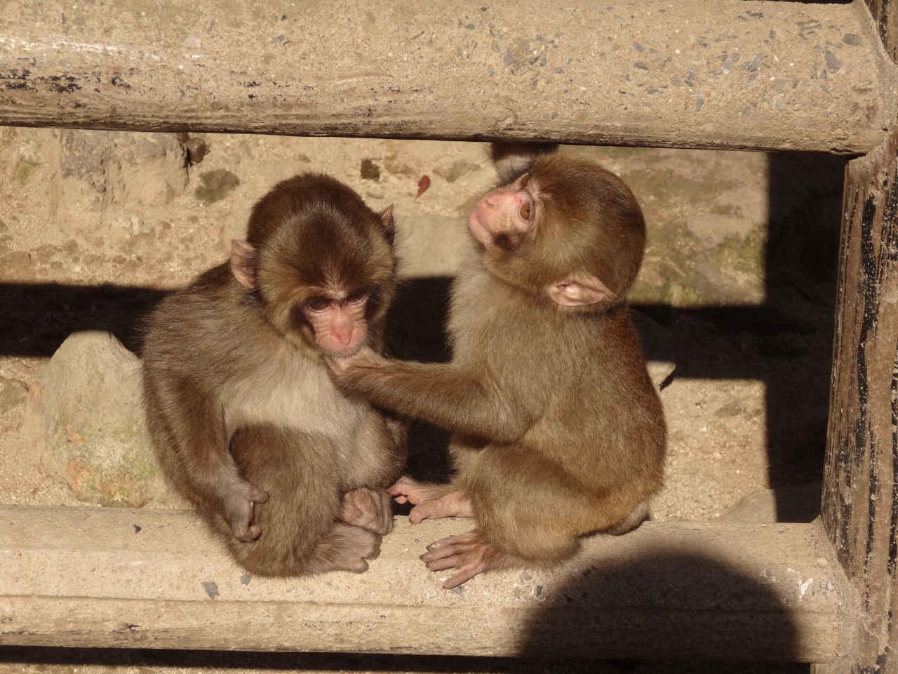 高崎山のサルを観に高崎山自然動物園へ行ってきました。柵は無いので、出てきたサルは道端で日向ぼっこしたり、喧嘩しているサルなど間近で見る事が出来ます。30分に1回のエサやりの時間になるとサルがたくさん集まってきます。凄い数なので迫力があります。人間にお構いなしで集まって来るので、人の股の間を通りぬけるサルもおり、ジンクスでたくさんのサルが通りぬけると良いことが起こると言われているそうです。大股を開く大勢の人間を遠巻きで見ると、それもまた滑稽で面白かったです。