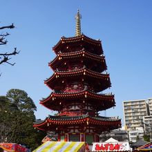 川崎大師の境内にあって、一番目立つ建物と言えば、八角形が豪華なこの五重塔でしょう。実は、昭和59年に出来たもの。歴史的なものではないのですが、空海の入定1050年と本尊大開帳の記念事業として建立されたものです。