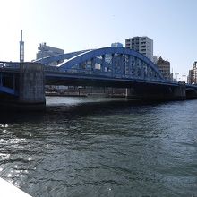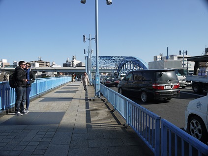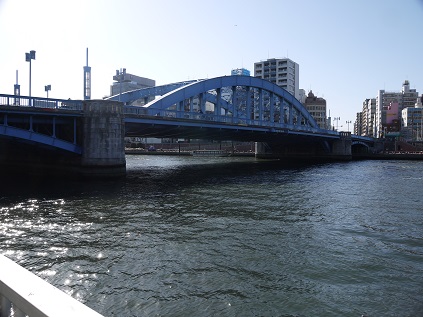 駒形橋は昭和2年(1927年)に竣工した隅田川に架かる橋で橋が架かるまでは「駒形の渡し」が有った場所です。橋の完成に伴い「駒形の渡し」は廃止されました。隣に架かる「吾妻橋」が赤色に対して駒形橋は水色の橋です。尚「駒形」は「こまかた」と言うそうです。