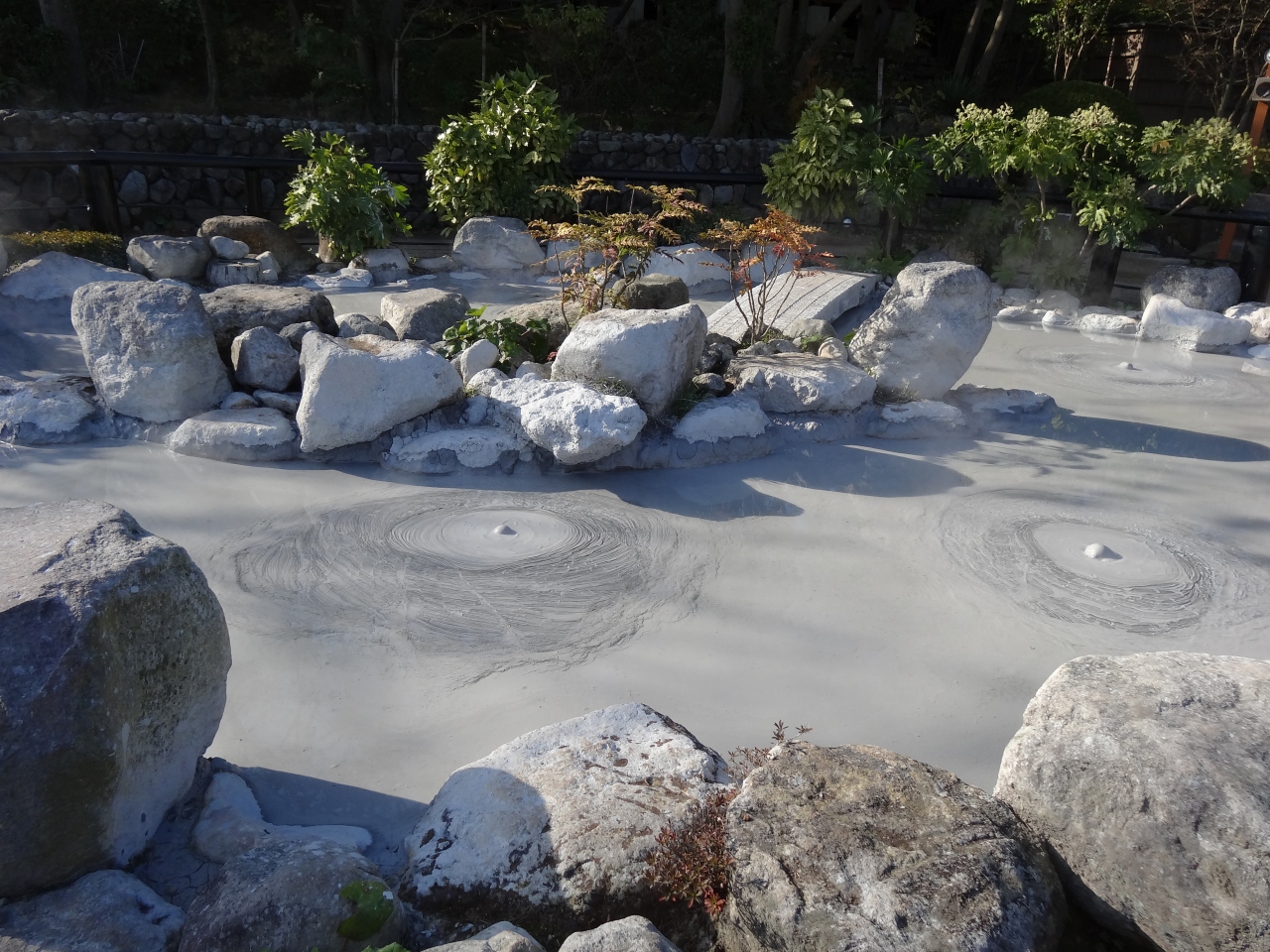灰色の熱泥が沸騰する大きな泡が坊主の頭に似ている事から坊主地獄と言われているそうで、その大きな泡ができる瞬間をカメラに納めたくて、悪戦苦闘しました。後になって連写すれば簡単に撮れたとそのときの努力が無駄だったことに少し悔やみました。坊主地獄で販売している地獄で蒸したピリ辛の「鬼石饅頭」や竹皮製の弁当箱に入れて蒸した「地獄蒸し寿司」がオススメ。特に「地獄蒸し寿司」はただ温めたとういだけでなく、香ばしい味がしてとても美味しかったです。