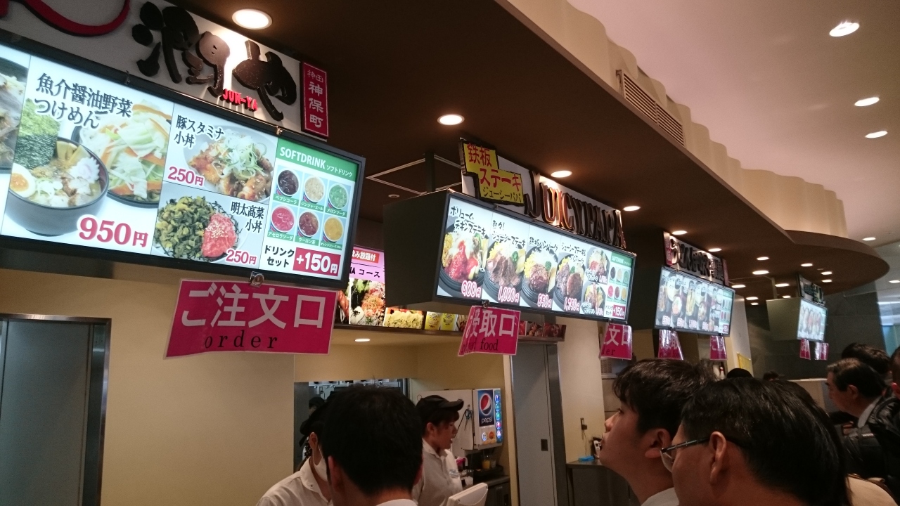 東京ビッグサイトにあるフードコート。ビッグサイトは、りんかい線の国際展示場前駅前を除き、周辺には飲食店がないので、展示会の際のランチは、ここか、展示場内のレストラン、スタバ、タリーズなどのコーヒー店しかなく、安くて(都心と比べると高い)、種類がある場所というとここになります。カレー、海鮮丼、うどん、ハンバーグ、つけ麺の、5つのお店があり、価格は1000円前後。味は不可はないという感じです。つけ麺を食べましたが、100円増しの大盛りはとんでもない量でした。
