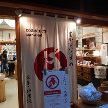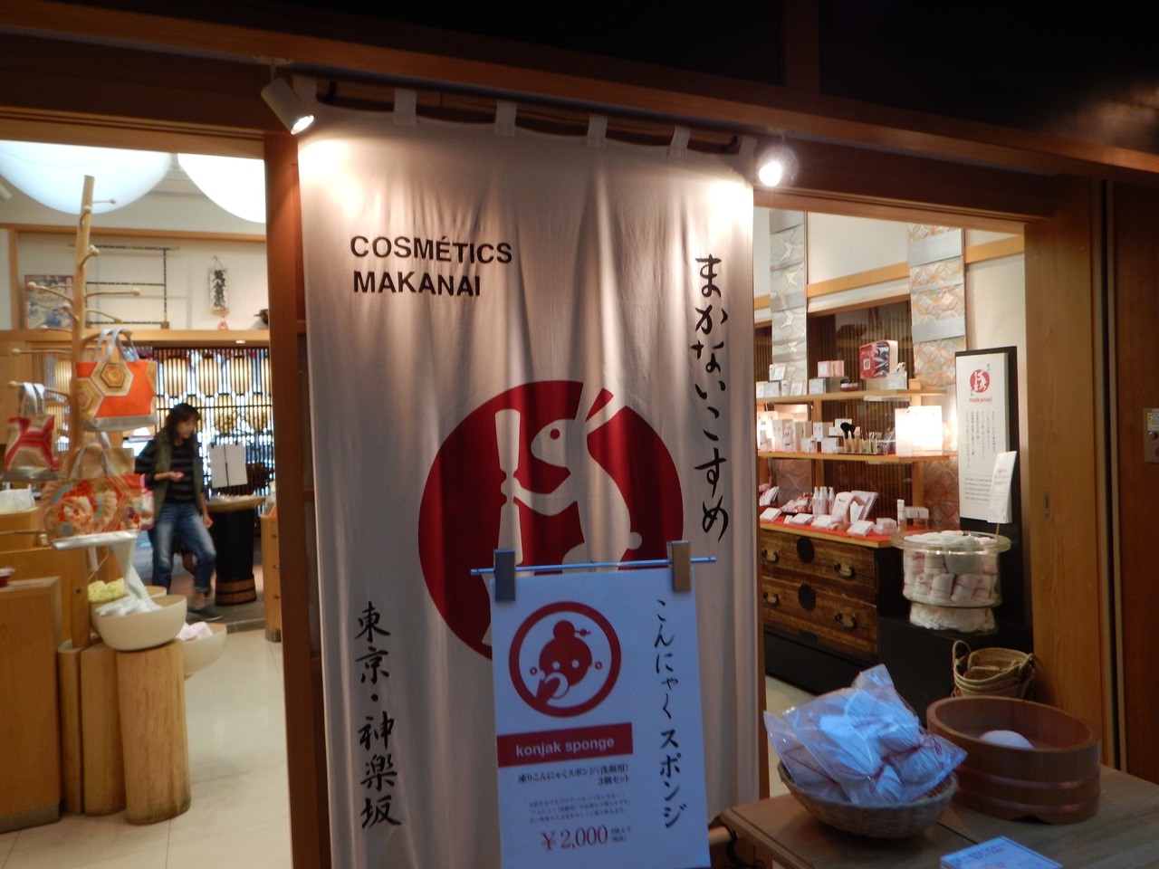 羽田空港国際線旅客ターミナル 4階 江戸小路にあります。ウサギが餅つきをしている看板なので、食べ物屋さんかと思って近づいてよく見ると、和風コスメのお店でした。「まかないこすめ」のことは知りませんが、店員さんのお話を聞いたり、店内を見て回ったりして、とても肌に良い自然派の化粧品であることが分かりました。こんにゃくスポンジというのが気になったので、次回買いたいと思っています。