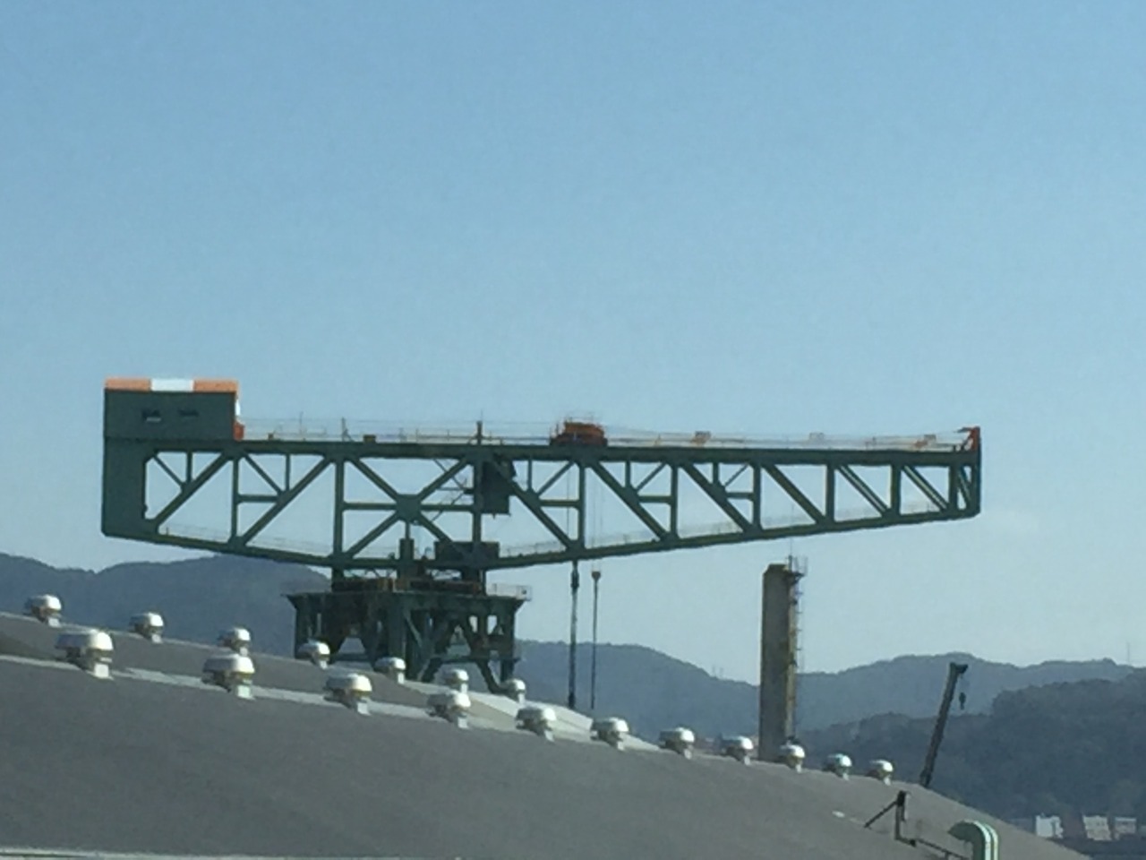長崎の三菱造船所の中でも異彩を放つクレーンです。バスからも見ることは出来ますが、一般公開はしていません。何せ現役ですから。