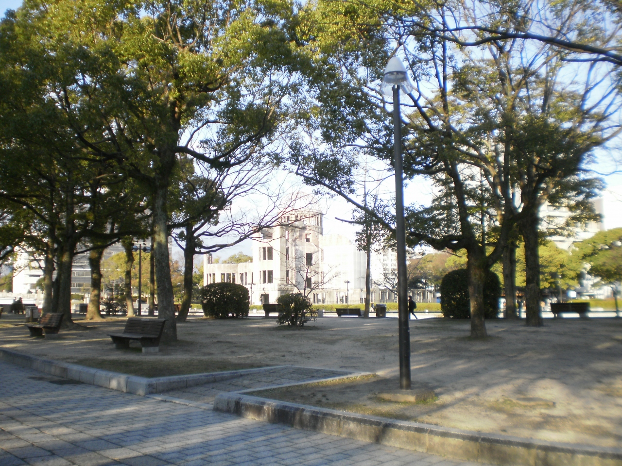 テレビなどで見た風景をあちらこちらで見かける公園です。 原爆ドーム、広島平和記念資料館、平和の鐘などをさがして散策しました。 平和の鐘は自由に衝くことができました。 樹木が多く、川が流れており、ここで多くの人々がなくなったんだなぁと考えさせられました。
