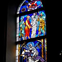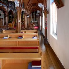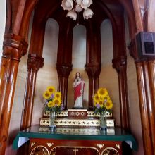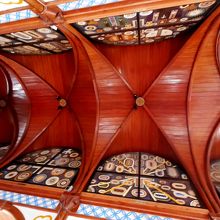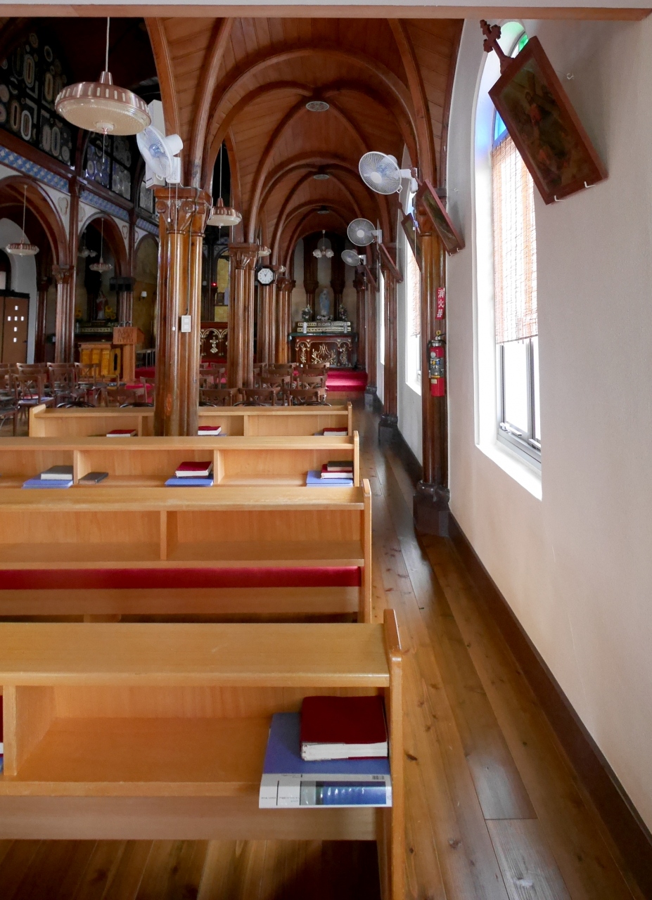 カトリック山田教会へ 長崎五島の教会を広く建設したあの鉄川与助の教会 中はとても素晴らしい,この辺境の地に蝶を用いたモダンな教会.こうもり天井の伝統と日本の美的感覚を融合したうえに,近代的な装飾を施した内陣.ここの方々の心意気と信仰心を感じてしまう.ここはたしかに聖人の島かもしれない.生月島に行ったら絶対よるべき教会だ