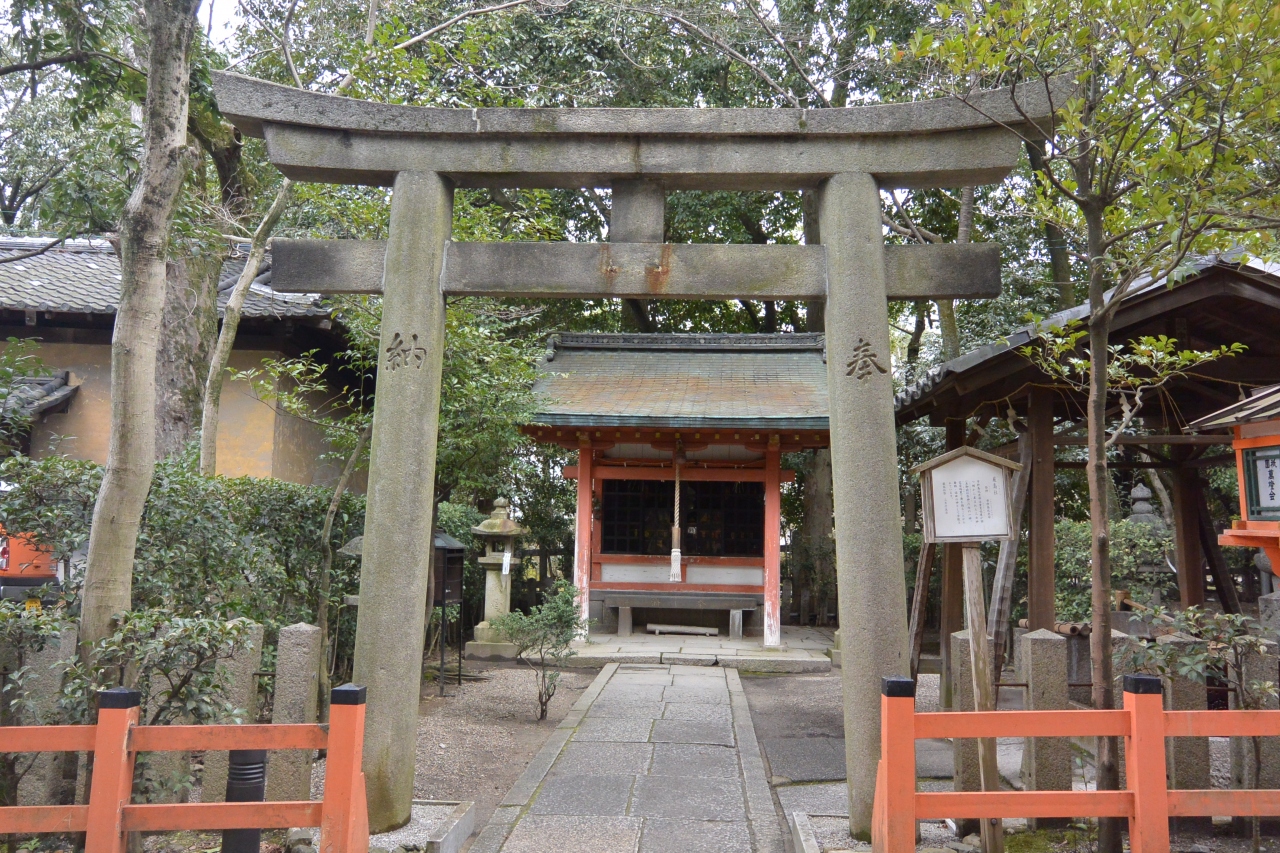 厳島社の社殿は西楼門を入って左側に進む参道沿いにありますが、この参道は人が少なく静かでひっそりしています。ちょうど本殿の北側に位置しています。この厳島社もそうですが、八坂神社にはほんとうにたくさんの摂社・末社があります。