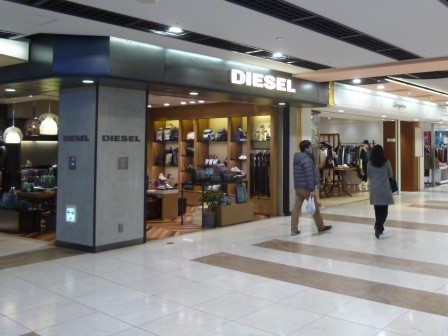イタリアのプレミアムジーンズブランドのDIESELですが、ここは鞄など雑貨類を中心としたお店のようです。いかんせん駅地下でスペースも限られますので、試着室など必要のないアイテムのみということになるのでしょう。