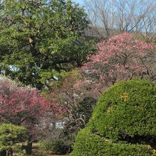 2月中旬には梅が咲いていました。雪吊りもあります。