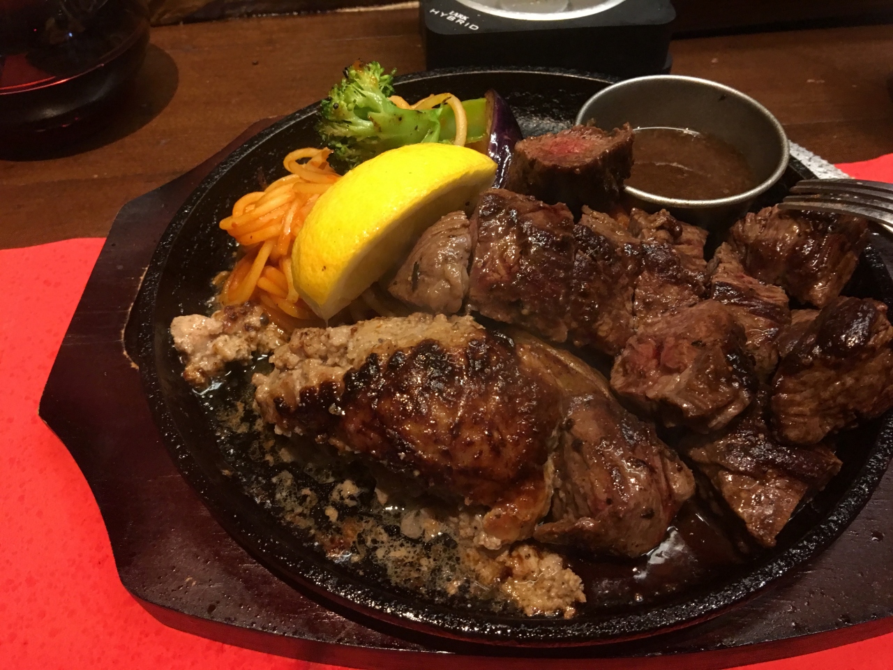 - アツアツのステーキをガッツリいただけました。ハンバーグもおいしかったです。