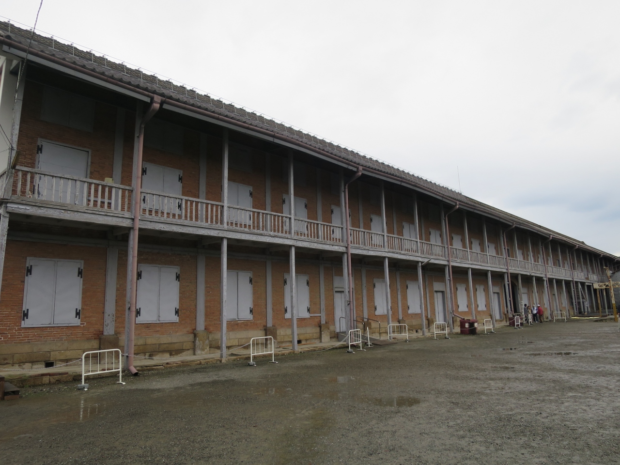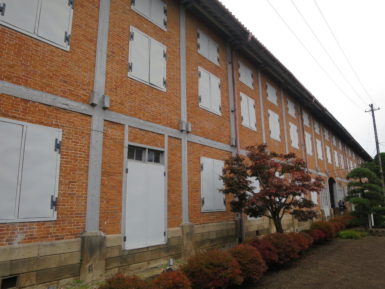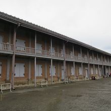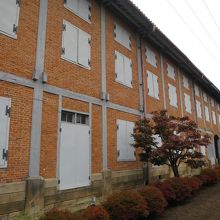 旧官営富岡製糸場の正門を入って正面にある横に長い煉瓦造りの繭を保管した倉庫です。奥には同じ形をした西繭倉庫があります。