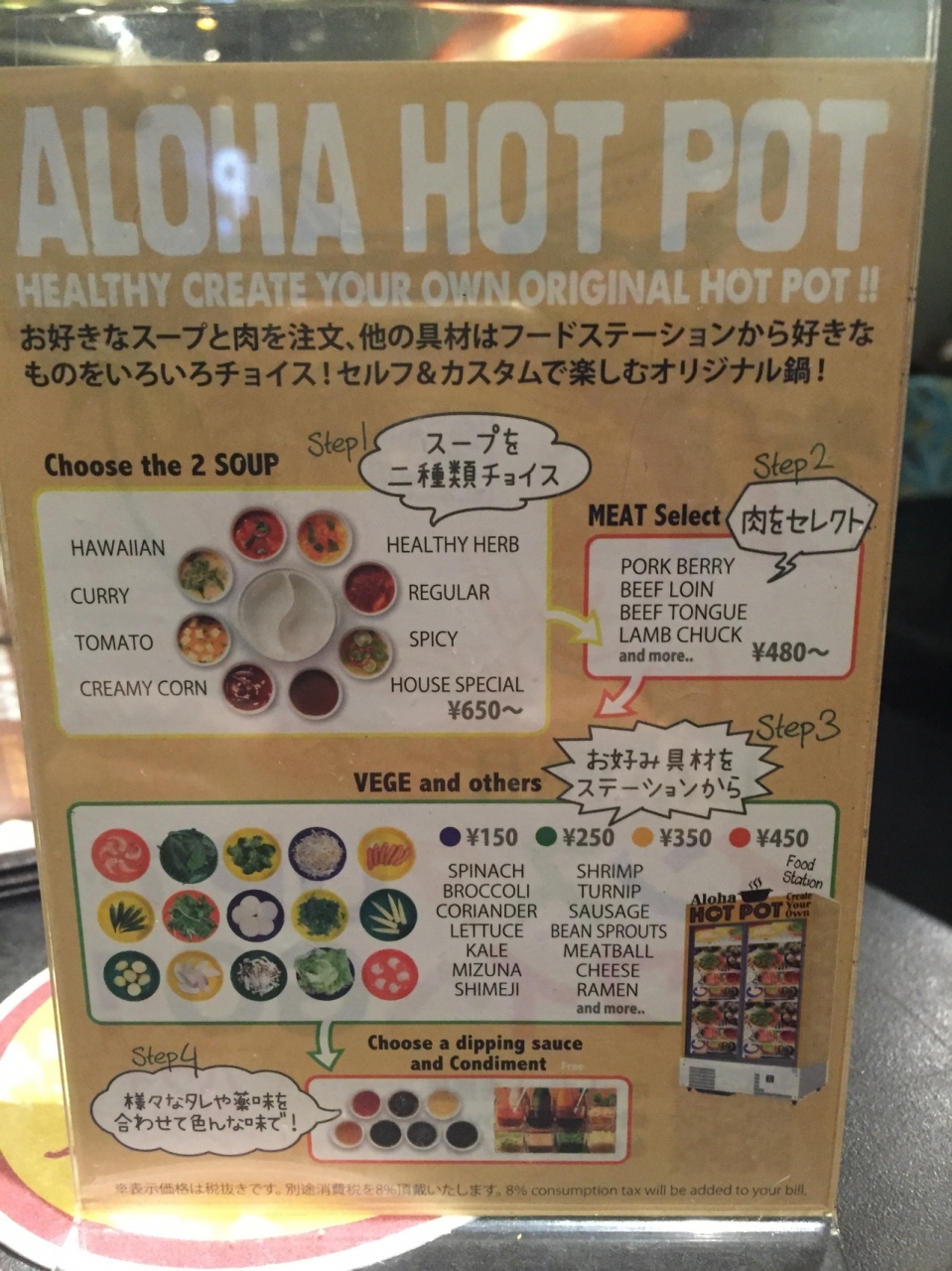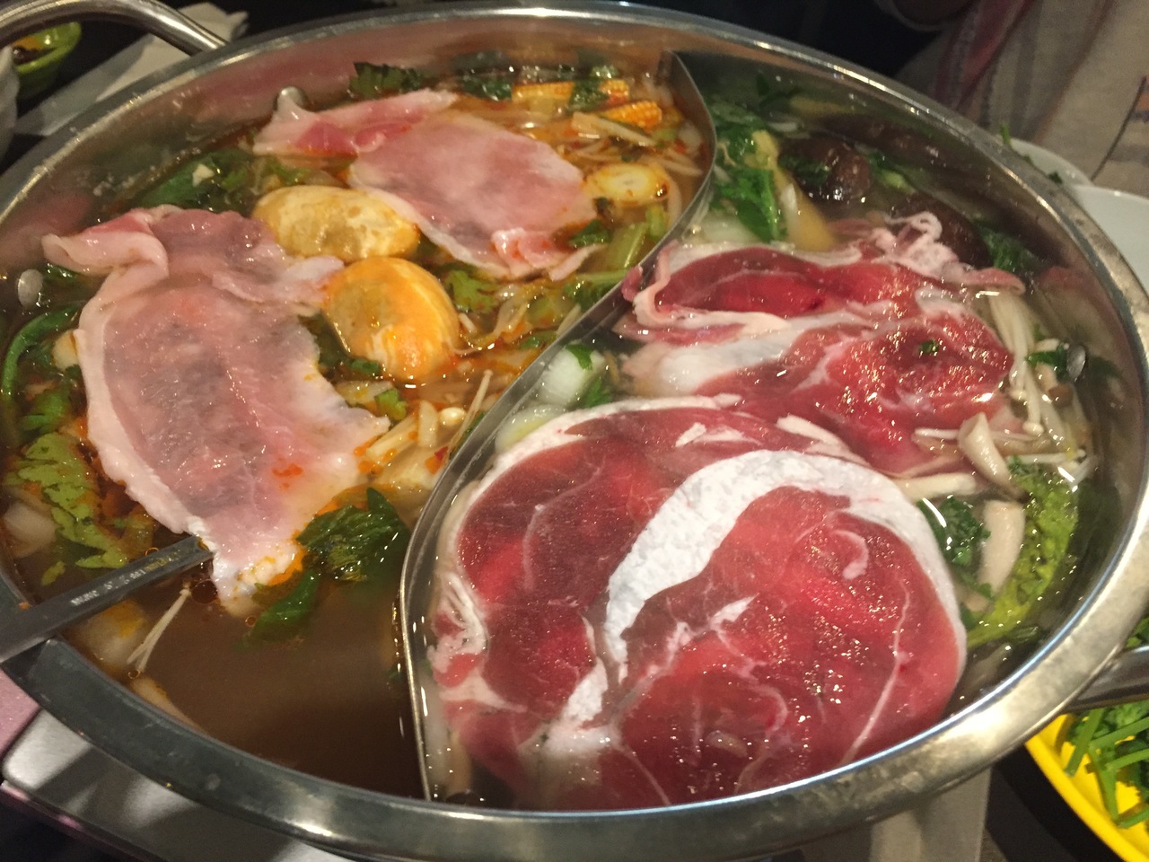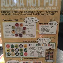 好みのスープ2種類とお肉を選んで、後はショーケースに並べられた野菜など好きなものを選んでお鍋に。