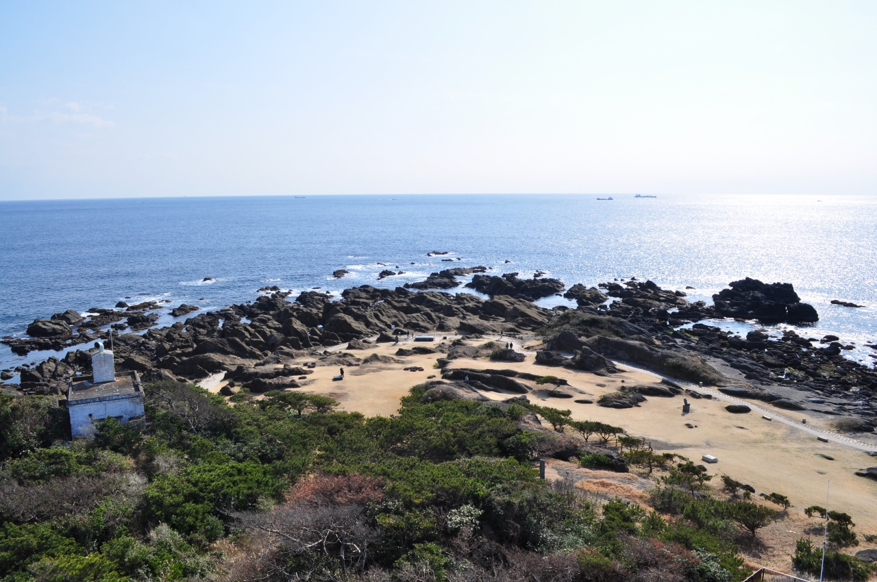 房総半島の最南端、野島崎にある現役の灯台になります。日本でも数少ない人が登れる灯台(全部で15か所ほど)の一つだそうです。窓口で入場料を払って灯台の中に入ると、らせん状の階段があり(最後の方は急な階段があります)、登りきると野島崎の全貌と太平洋を見渡すことができました。灯台の下にある窓口横には小さな資料館が併設されており、昔の野島崎灯台の姿などが知ることができます。