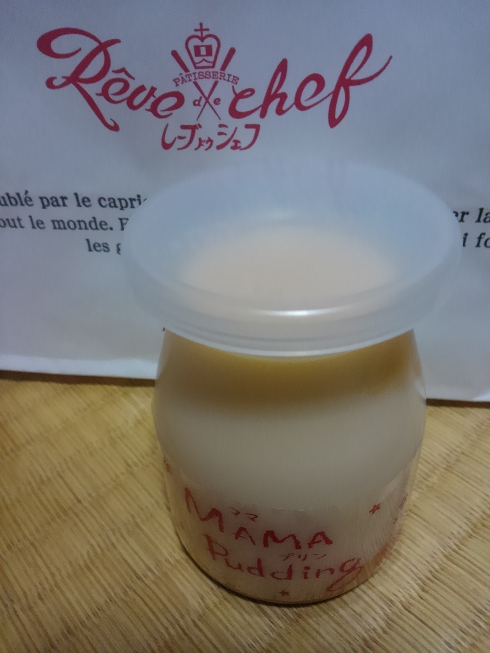 ママプリンとパパプリンの違いを聞いたら、ママプリンは昔ながらの味で卵たっぷり、パパプリンは生クリームを多く使ってるという事でした。