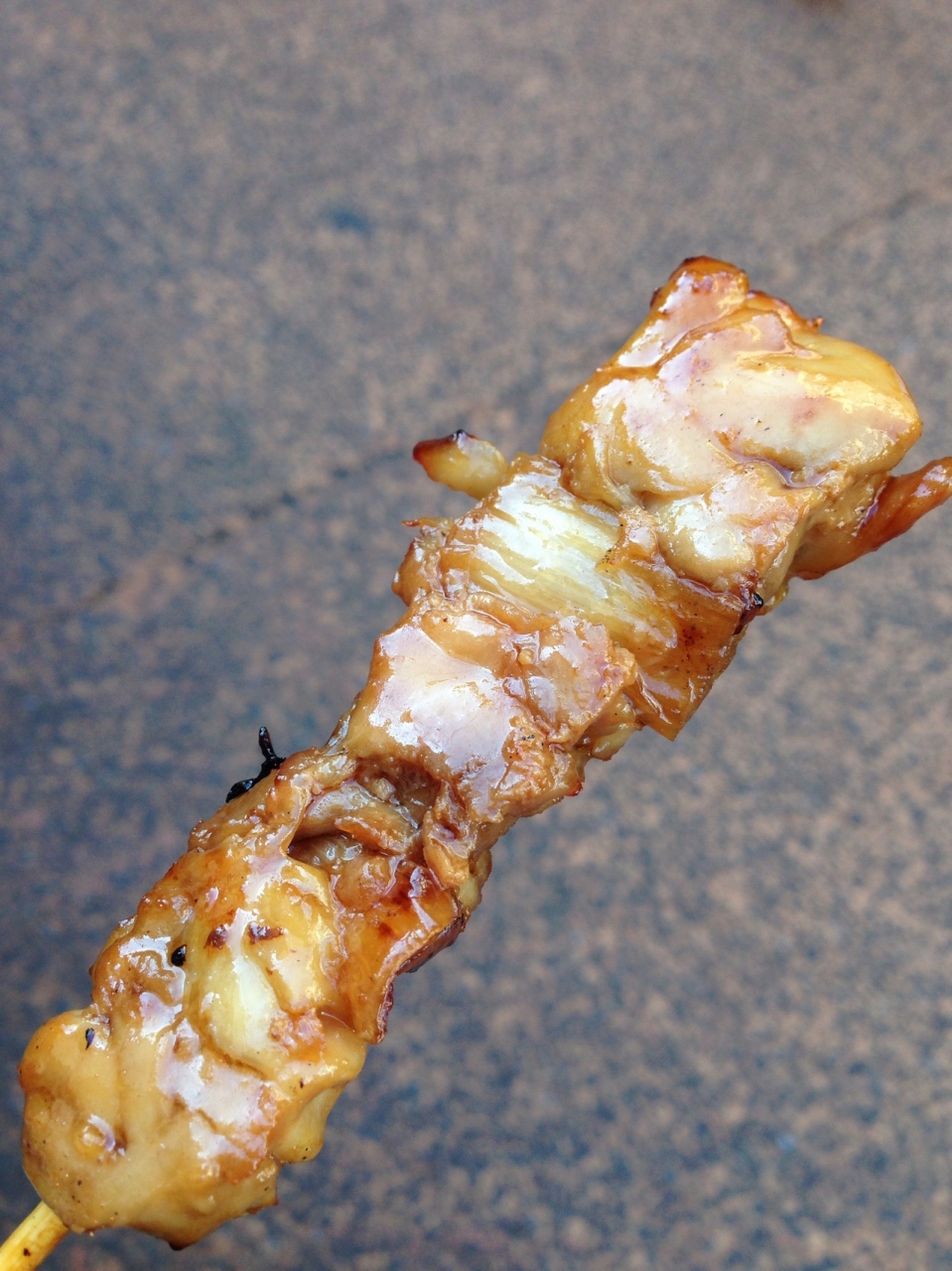 安すぎる! コロッケ30円 焼き鳥50円…前の方がまとめて購入していたのもうなずけます。人気の店で回転も早いので焼き鳥はゆげが立ってました。食べ歩き様に購入したら タレをたっぷり着けてくれて、とても美味しかった。